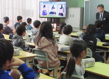11月27日は、中央小学校と空知太小学校の5年生37人が社会の授業を受けました。子ども達は、中学校で習う地理・歴史・公民について紹介されると緊張した表情で聞き、その後の「商品の流通」に関する授業では、他校の児童とも話し合ったり動画を見たりしながら普段とは違う授業に集中していました。