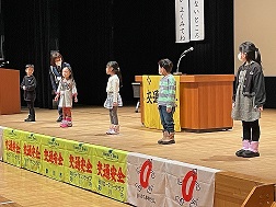 2月20日(火) 地域交流センターゆうで、「新入学児童交通安全教室」が開催されました。今年4月の新入学児童は90名、保護者の方も同席の中、5つの小学校の代表児童に【黄色い帽子】のほか、砂川青年会議所から【黄色い傘】が贈呈されました。滝川警察署交通課から交通安全ルールのお話の後、会場内に設置された信号機と横断歩道で、正しい渡り方を教えてもらい、最後に交通安全のアニメ「三太郎とかぐや姫の交通安全」が上映されました。