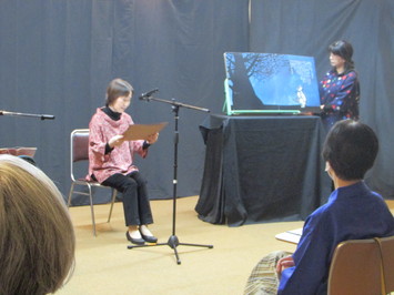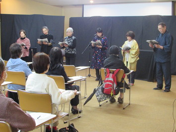 芥川龍之介の「蜘蛛の糸」や児童文学の名作「モチモチの木」など様々な作品が披露され、最後には朗読ボランティア全員による群読「きみのことがだいすき」で締めくくりました。