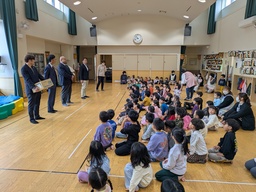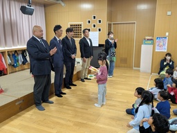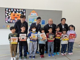 これは社会貢献活動の一環として、未来を担う子どもたちの成長を応援する活動に取り組んでいるもので、市内3保育所に直接届けていただき、子どもたちはプレゼントされた絵本に大喜びでした。