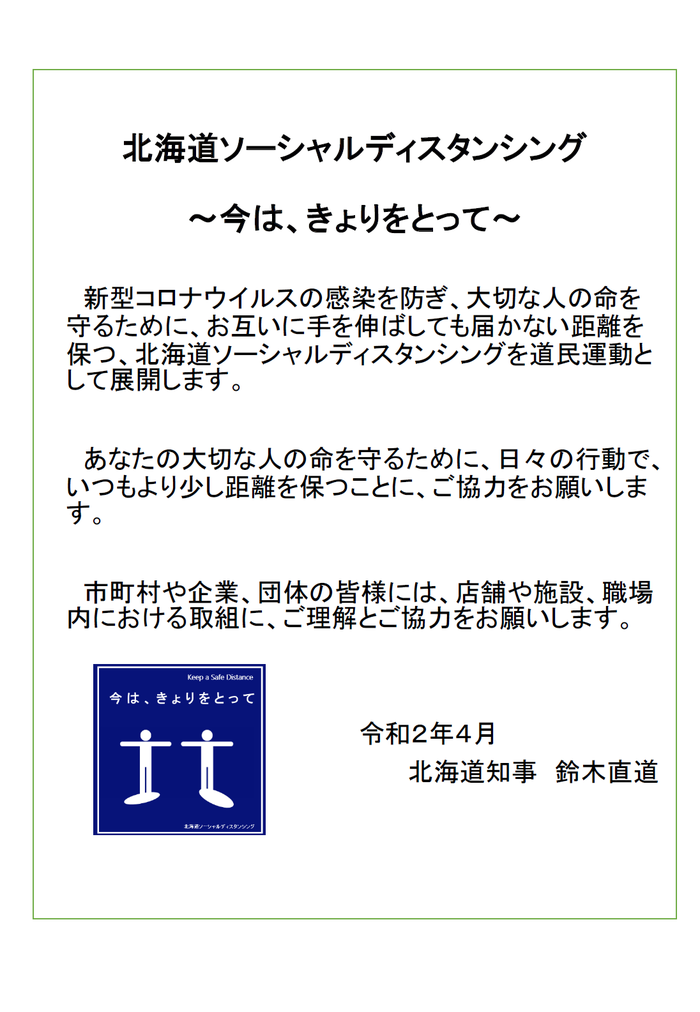 事業者の皆様へ~北海道ソーシャルディスタンシングの取組について~
