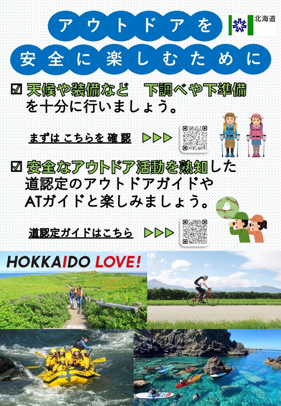 北海道のホームページを参考に十分注意し、安全にアウトドアを楽しんでください。
