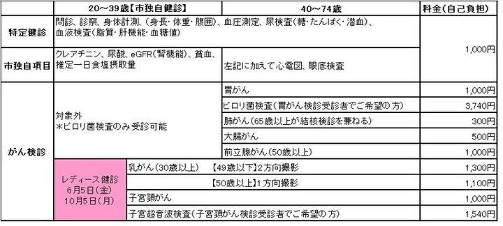 ■健診内容・料金 ☆国保加入者は胃・肺・大腸・乳・子宮がん検診を半額助成しています。