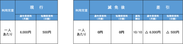 ※ 生活保護世帯においては延長保育料(日額200円)も全額免除となります。