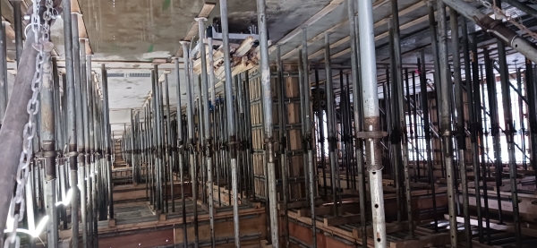 1階は型枠を撤去し、設備工事の準備中です。