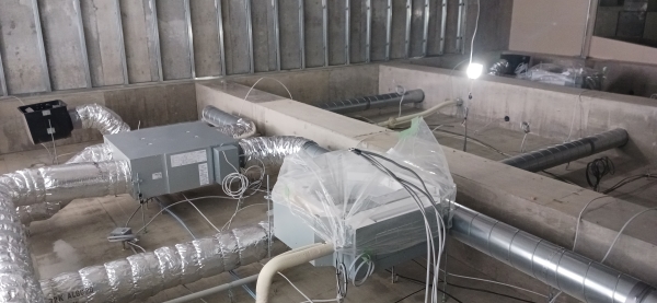 1階内部工事が始まっています。間仕切壁や各種設備機器の設置を行っています。