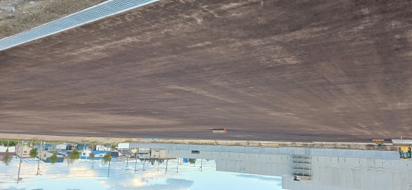 下の空中写真は11月28日時点の写真で、縦横に走っているのが作業用通路です。