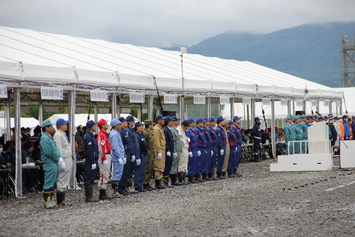 今回の演習では、総勢283名が参加し、国土交通省から清水真人政務官はじめ、水管理・国土保全局、北海道局、北海道開発局、また、全国水防管理団体連合会、北海道からは鈴木直道知事はじめ白石俊哉建設部長、総務部危機管理監なども参加しました。