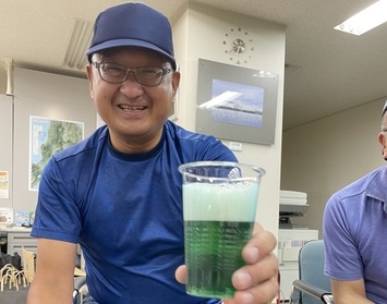 会には、斎藤所長お手製の「青い焼きそば」「青いシュウマイ」「青いおにぎり」も!ちょっと手を出すのを戸惑いましたが、おいしかったです ^-^