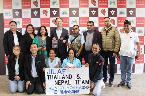 国際労働財団の招へい事業で日本に招かれたタイから6名、ネパールから6名と連合北海道和田英浩事務局長(元砂川市職員)はじめ事務局の方が表敬訪問に来てくれました。