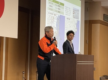 その講演の中で、それぞれ被災状況など被害の概要と対応状況についてのお話があり、市内の住宅6割以上が半壊・全壊し、社会インフラが分断され、戻る家もないため市役所に寝袋で寝泊まりして対応にあたった職員もいるとのこと。また、1年前に起きた震度6と今回の震度7では全く揺れが違い、比較にならないものだった。震災直後は、日々、市民の命を守るための決断の連続で、1か月半市役所での寝泊まりも続き心身ともに疲弊した。全国からの支援に大変感謝しているが、まだまだ復興途中であり引き続き協力をお願いしたいとのこと。