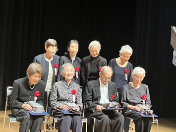 記念式典では、88歳以上で10年間の参加回数が400回以上の9名を表彰しています。みなさん、体操を続けている効果で足腰がしっかり。