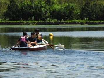 良過ぎるくらいの天気で、気温も30℃超えの中、子どもたちは精一杯パドルを漕いでいました。