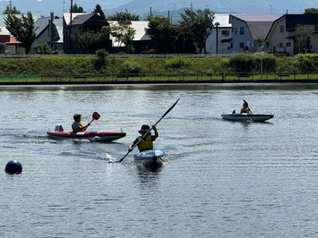 中には、水上を右往左往する子も見られましたが、さすがに中学生にもなると力強いパドルさばきで、見事に水上を進んでいきます。