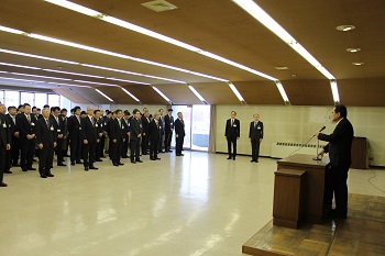 8時30分より大会議室で開催。昨年は30分程訓示をしていたら倒れる人がいて、その反省と私自身も高血圧と喘息のため体調が悪いので短く1点のみを話していたら、今年も目の前で貧血により倒れる人が。私の方が危ないと思っていたので逆にびっくり。お互いに健康管理には十分注意しなければと感じた。