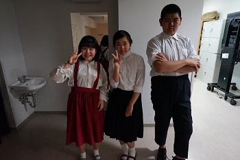 砂中演劇部は左から藤田奈凛さん、七尾優良さん、奥山優紀さん