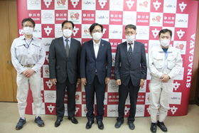 王子コーンスターチ(株)は砂川を支えてくれる大事な企業で、毎年市長室に来てくれます。コロナウイルスの影響で厳しい状況がつづいていますが、市民・各企業が自分たちのできる感染症防止対策をしっかりとることが大事です。