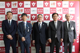 4月1日付人事異動で、札幌開発建設部石川伸部長(写真中央)、同 岡部博一次長【河川担当】(写真左から1人目)、同 本田肇次長【道路・空港・公園担当】(写真左から2人目)が着任挨拶に来られました。