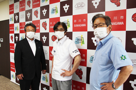 本日はそのお披露目も兼ねて、其田勝則同窓会長(写真中央)と砂川高校小田島数幸校長(写真左)が市長室に来ました。大変ご苦労様です。写真のポロシャツは其田同窓会長がOB及び一般市民用の白色で、私が在校生用の青色です。