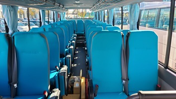 令和5年度の中学校統合に伴いスクールバス3台を購入し本日納車された。バスは日野自動車製の中型バス45人乗り。11月~3月の間で約30日試験運行の予定。