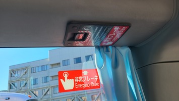 乗客席の天井にも非常用ブレーキのスイッチがあります