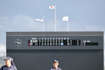 スタンドの奥には、わざわざシロの福永社長が東京から駆け付け、望月さんや会社の社員総出で応援。今日は仕事を休みにしたそうです。試合は14対6ですながわリバーズが勝ちましたが、想像以上に人が来ていました。地元に球団ができる効果は大きいと実感します。