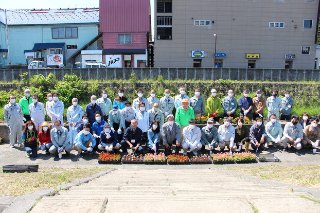 NPO法人オアシス(林幸治理事長)主催で第18回目を迎えた植栽会に、地元町内会・商店会、建設協会、北観協砂川支部、観光協会、砂川こども水辺協議会、青年会議所、市議会議員など総勢80名で実施。今年は参加者が増えていました。