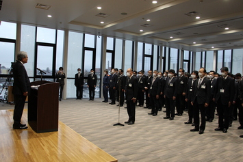 退任式前に商工会議所の其田会頭、山田副会頭、佐藤副会頭が来訪