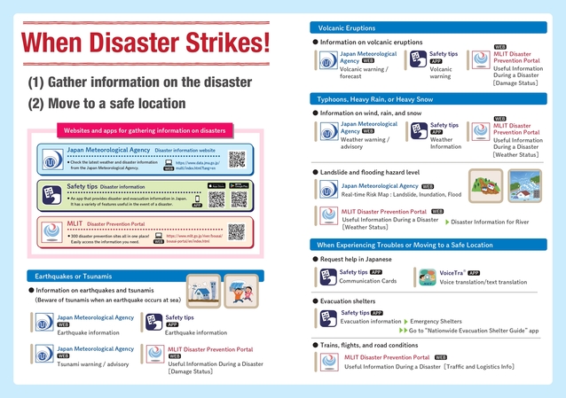 災害に関する情報を、以下のポスター及びリーフレット内のQRコードから入手することができます。