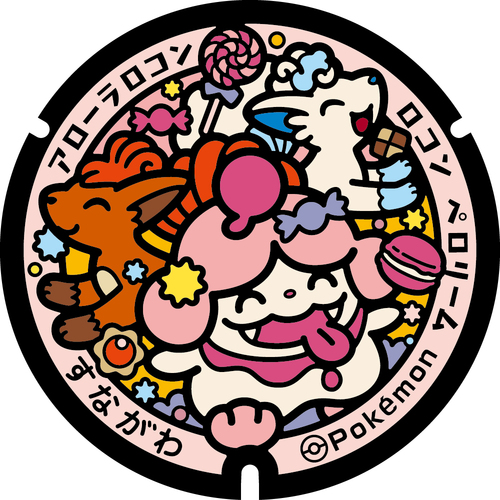 砂川市の『ポケふた』には、「北海道だいすき発見隊」に任命されているきつねポケモンの「アローラロコン」と「ロコン」に加え、ホイップポケモンの「ペロリーム」もデザインされています!
