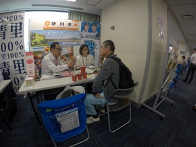 1日目は、有楽町の東京交通会館内にあるどさんこ交流テラスで、砂川市暮らし相談会を実施しました。前年度に引き続き、またこちらの場所をお借りして実施したところ、1組のお客様がいらっしゃいました。砂川市の紹介を行い、よいところをPR。すながわ情報メールの登録もしていただきました。今回は、別の用件で来られていた砂川市議会の武田圭介議員が、2日間とも顔を出してくださり、相談のお手伝いをしてくださいました。私たちだけでは説明し足りなかった部分について、お客様にわかりやすくていねいにお話くださいました。
