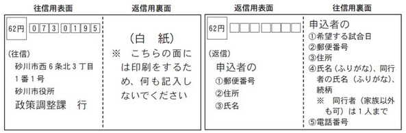 下図のとおり、往復はがきに必要事項を記載して、申し込みください
