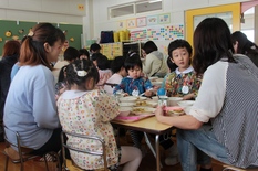 子どもたちはお父さんやお母さんと一緒に食べた給食に満足そうに笑顔を見せていました。