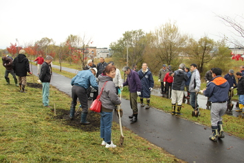 さくら保育園南側の「ペンケ歌志内川さくらづつみ」において、砂川ロータリークラブの皆さんが桜の苗木の植樹を行いました。