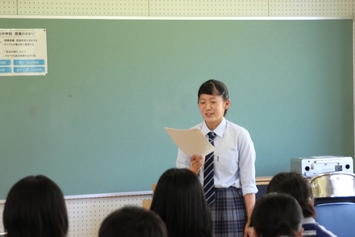 石山中学校において砂川高校の説明会が開催されました石山中学校の生徒3年生36人が参加し、元石山中学校の先輩方による砂川高校での勉強や部活などについて話がありました。砂川高校は単位制という必修科目以外は自分の興味や関心、進路などに注力を注げることへのメリットがあるということや、単位制の学校は先生がほかの学校と比べても人数が多く、相談事もしやすいということもあげていました。また、部活動もメジャーな部活動から聞きなれない部活動まで幅広くあることをアピールしていました。また、横山校長と池田教頭よりそれぞれ、砂川高校でのメリットや砂川市からの支援内容について説明がありました。