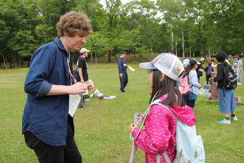 昨年砂川に来たばかりのケイティ先生も宝探しゲームで英語と日本語を交えてヒントを説明