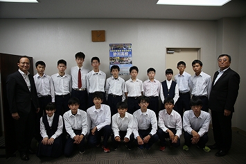 教育長室において市の中学生18人が北海道中学校体育大会に出場するため挨拶に訪れました。出場する種目は陸上競技(旭川市)や水泳(函館市)、バドミントン(稚内市)、ソフトテニス(千歳市)でそれぞれの出場する選手から「全国大会へ出場したい」「力を出し切り、一つひとつ勝ち上がっていきたい」など力強く抱負が述べられました。力の限り頑張ってください。