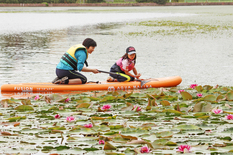 7 月1 日、北光公園にて「ジャリン子夏体験塾」が開催され、親子23 人が参加し、ローボートやカヌー、サップなどを体験しました。